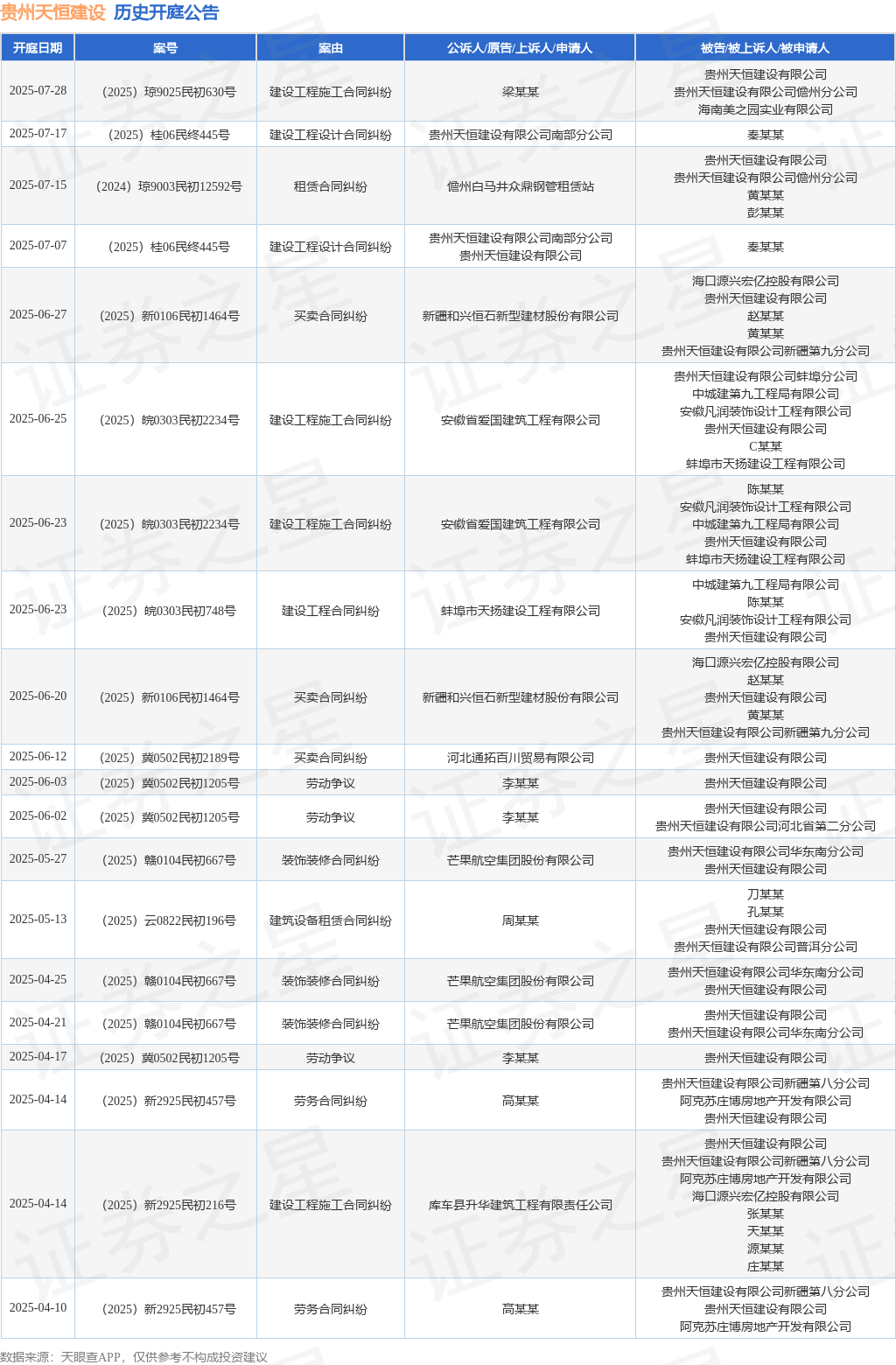本站消息正规股票杠杆平台正规股票杠杆平台,根据天眼查APP显示,近日公布了一则贵州天恒建设有限公司作为被告/被上诉人的开庭公告,详细内容如下: